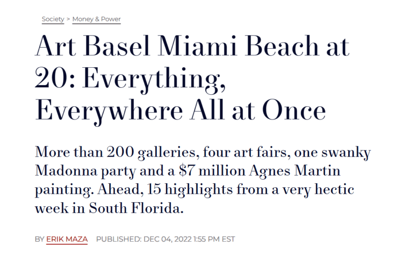 14 Jan Posted at 15:42h in Press by Fernando Pupo Town & Country: Art Basel Miami Beach at 20: Everything, Everywhere All at Once Access the full article