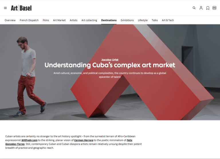 15 Jan Art Basel Magazine: Understanding Cuba’s complex art market Posted at 01:16h in Uncategorized by Fernando Pupo Art Basel Magazine: Understanding Cuba’s complex art market Access the full article
