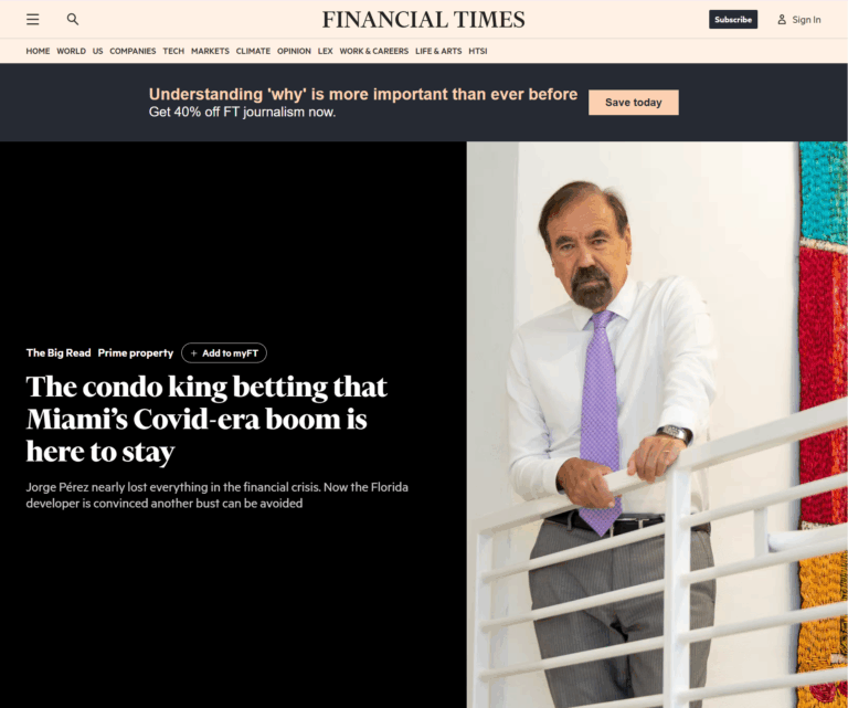 Financial Times Profile: The condo king betting that Miami’s Covid-era boom is here to stay