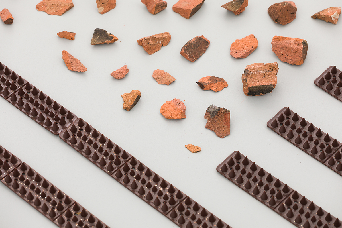 United States flag made of brick fragments and anti-climb security spikes