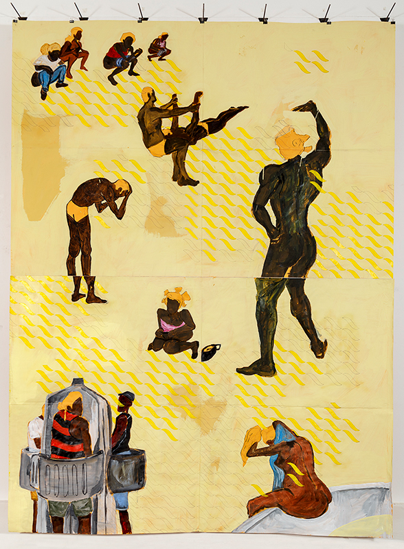 Latex, bitumen, grease, charcoal, graphite, and acrylic on brown paper
